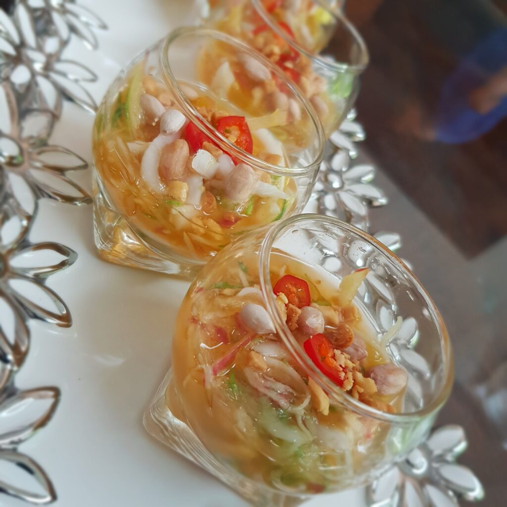 The recipe I will share with you is an instant fusion Asinan. Fusion because I have added young coconut strips, which is not normally added, but I love the taste of it.😊 This recipe is very forgiving, you can add or omit any fruits, you can either chop the fruits or grate. You can use this as a palate cleanser, amuse bouche, between courses or even before meals to give your appetite an edge😊. Best served chilled.