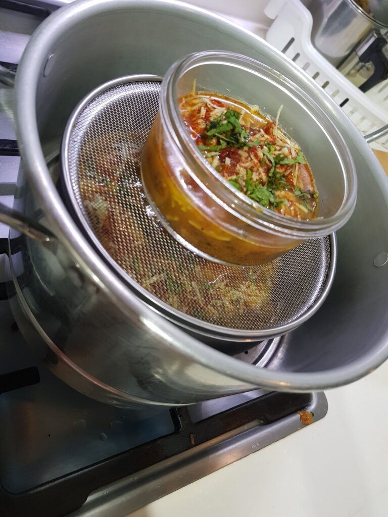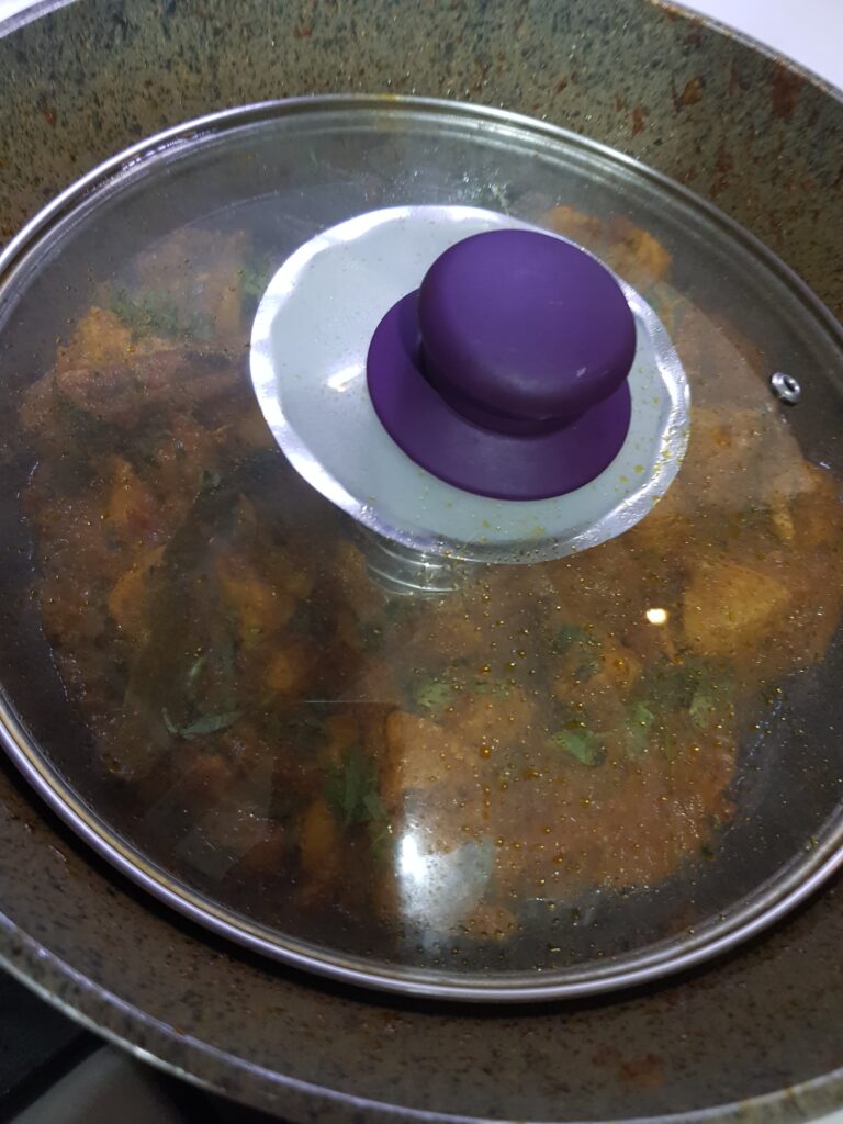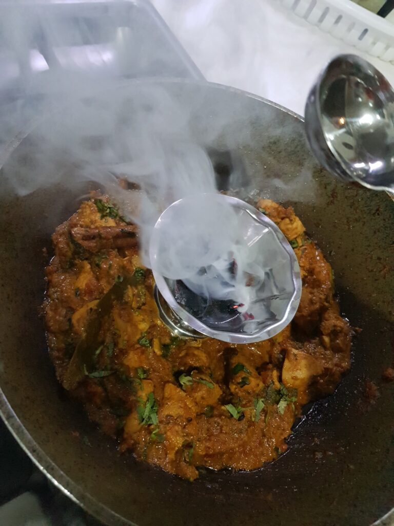 7. Transfer the chicken curry into a steel or heat resistant glass container.