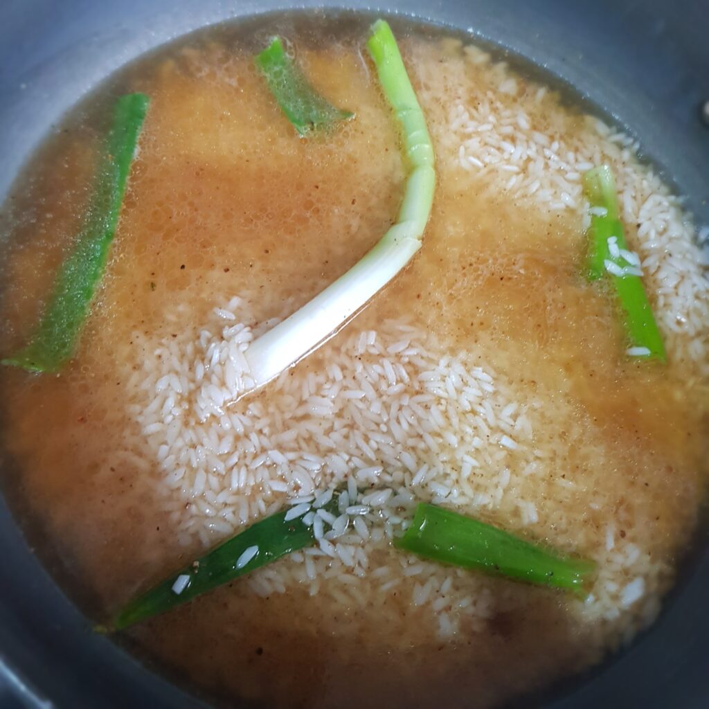 - In a pan, add 1.5 liters of water (or chicken stock if available).