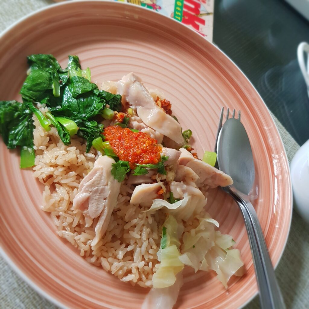 Mostly everyone is familiar with hainan chicken rice, more so those who travel to Singapore have surely eaten this. Singapore is famous for its Chicken Rice. On my first visit to Singapore in the early 80’s , it was one of the dishes we had had at a foodcourt. Smooth tender chicken, seasoned rice, a tasty broth to go with it, and the tasty sauces with it, make for a balanced flavourful dish. Here in Jakarta also its quite popular with a slight change in recipes.
