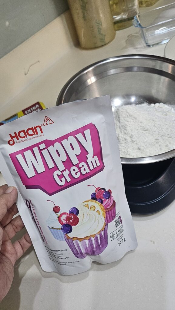 In this version, I’ve used powdered whipped cream mix—very handy to keep at home and popular among local home bakers. It’s easily available in India and most places; otherwise, you can use regular whipped cream.