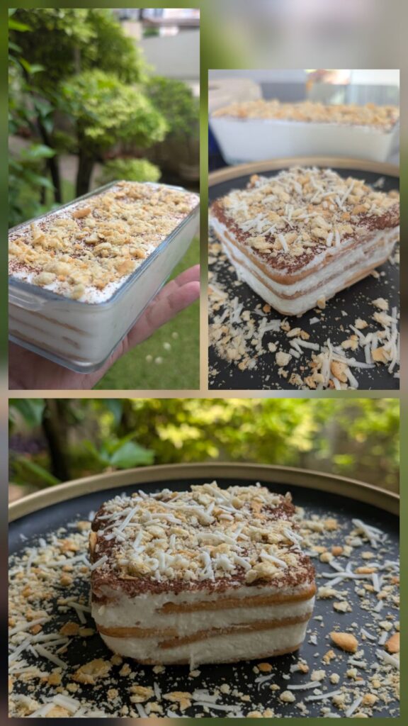 Once assembled, it’s chilled for a few hours or overnight, allowing the biscuits to soften into a cake-like texture. The result is a light, creamy dessert with a lovely sweet-salty cheese flavour. Easy to make and very comforting, cheesecuit has quickly become a favourite among home bakers and dessert lovers.