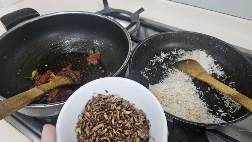2. Toast coconut – Dry roast for few minutes, till fragrant. Set aside.