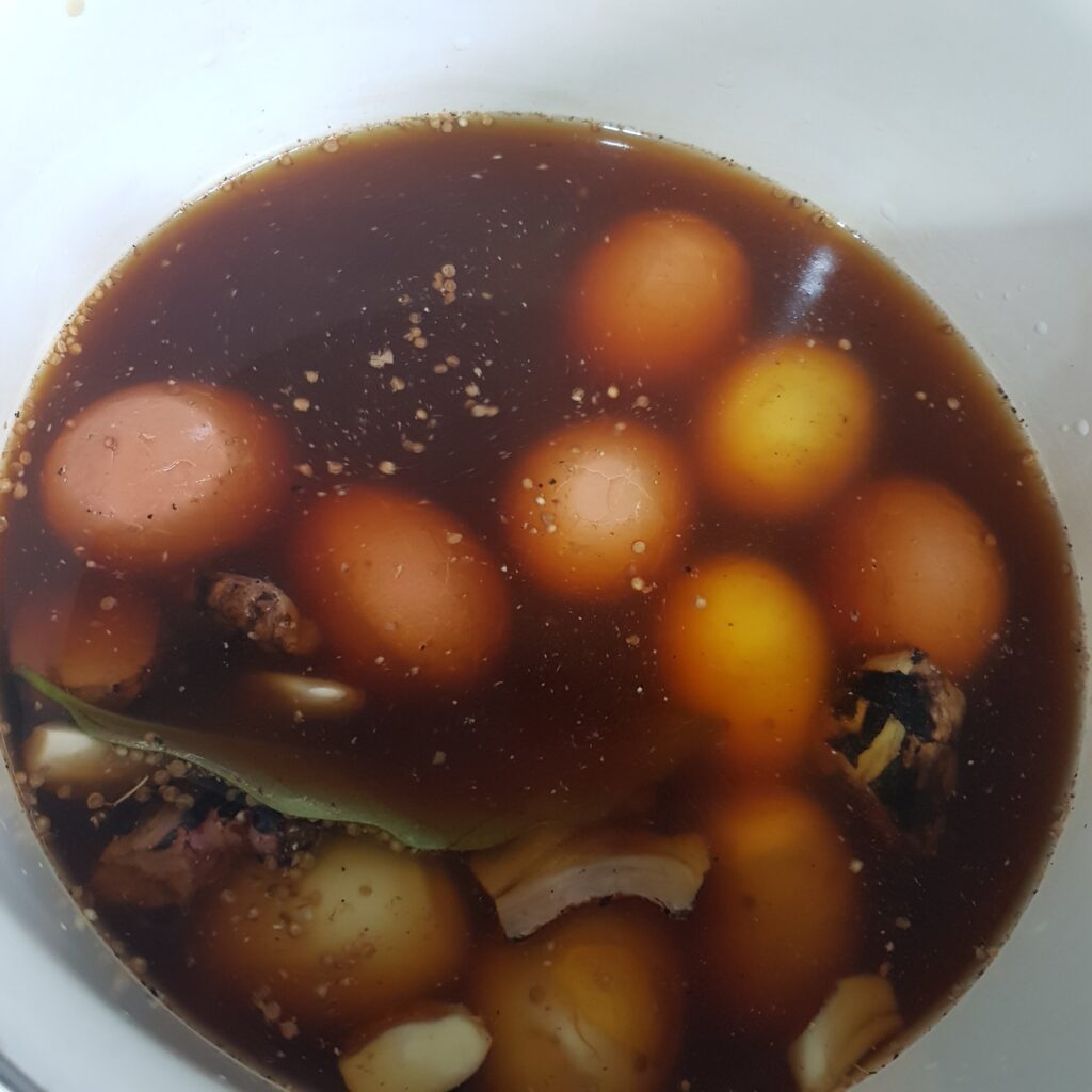 Over the years I must have eaten these eggs a number of times, especially in restaurants where they are served mostly with set rice dishes. And have never given them a second thought😊 But this once I decided to make them at home since my mom and sister are here from India and are eggitarians. PINDANG refers to a style of cooking. Years ago when chinese labourers came to Indonesia, they married the local women and thier cooking merged to become pernakan style cooking. These eggs are a cousin to the chinese tea eggs. The traditional old fashioned way is to boil the eggs , peel them and reboil with guava leaves, onion peels, teak leaves, etc. Not all of these are readily available, so onto an easier method which I saw on a local channel. Delicately flavoured, and a lovely brown look. These eggs taste good.😊 Today I will share the recipe for hard boiled Pindang eggs as well as the batik design ones. The batik ones to tell you frankly, are very pretty no doubt. But one needs to patiently remove the egg shell without loosening the membrane😊 as the design is stronger on it. These eggs can be served with fried rice, or even as starters with a home made chillie sambal sauce.. Do try out this simple recipe. And pls excuse the not so perfect looking eggs, as this was my first time in making these eggs.😊