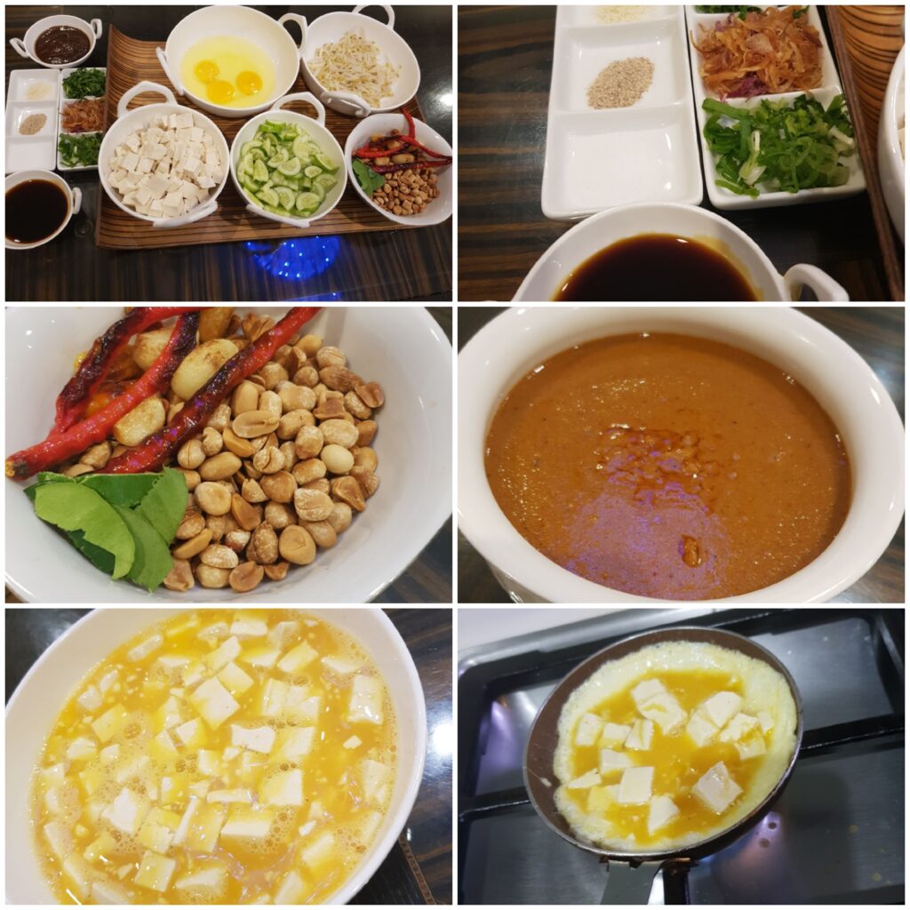 3. Heat 2 or 3 tbsp oil and add the peanut paste. Sauté for a while, then add the palm sugar and tamarind water. Add about one cup of water and let it cook till the oil starts separating. Keep aside.