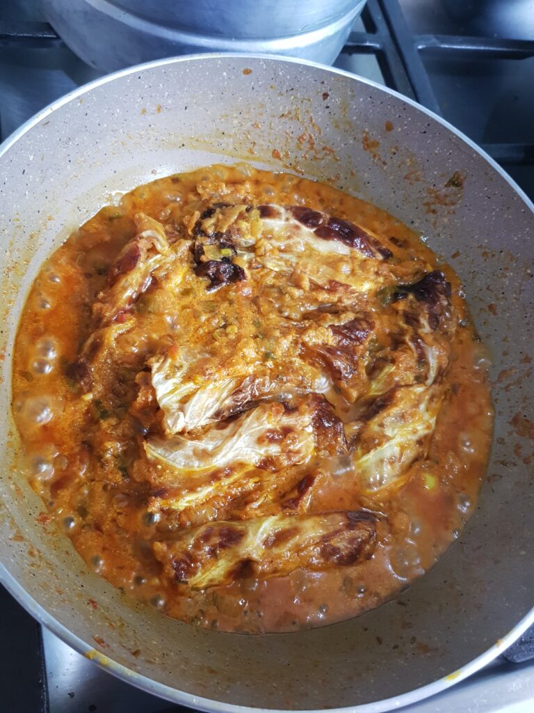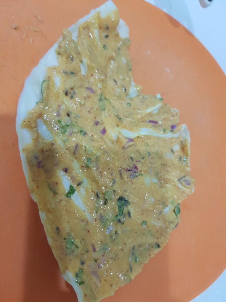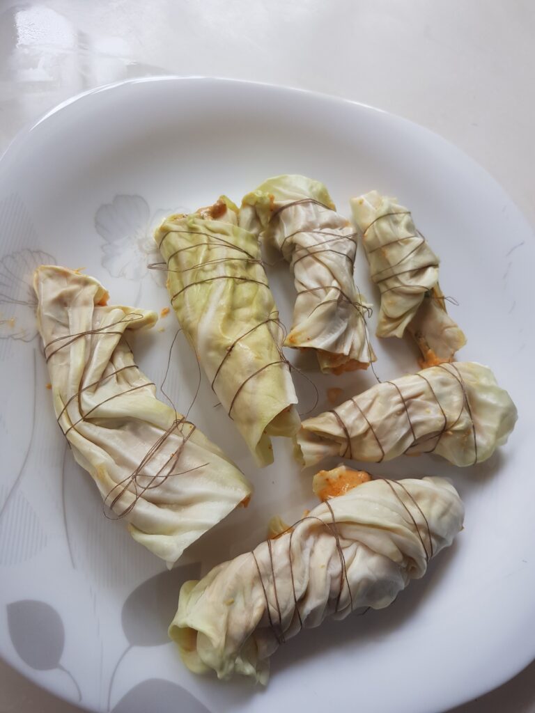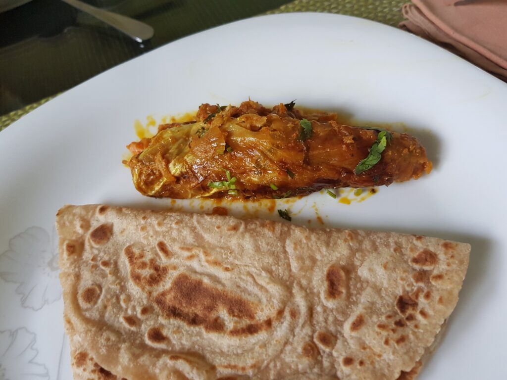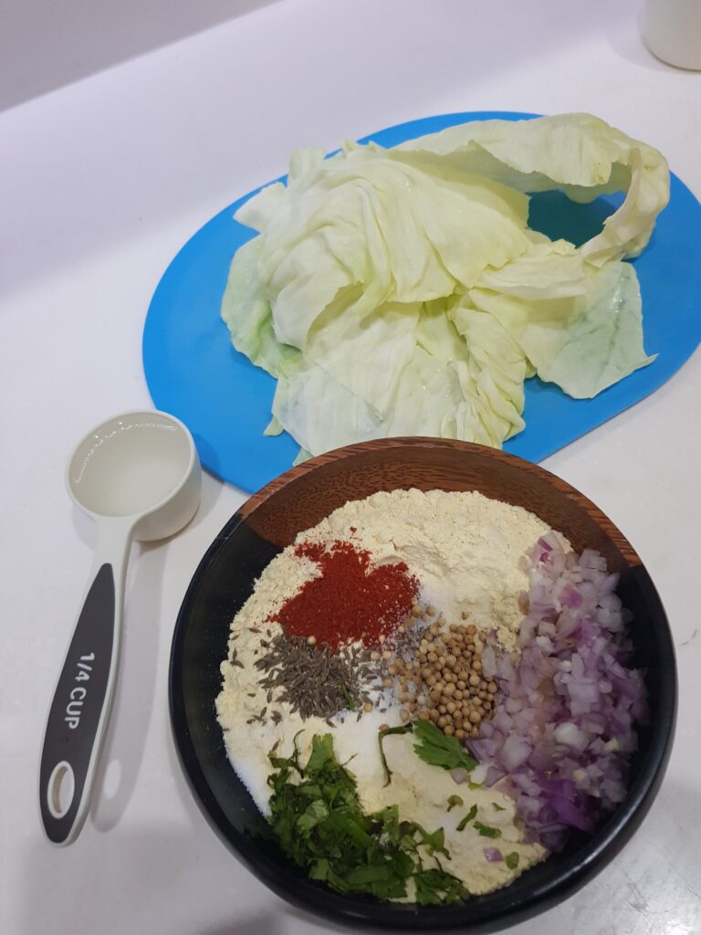 When I say vegetarian fish, it is the way this unique dish is presented. Making use of cabbage leaves to make rolls filled with a besan (chickpea flour) paste and then deep-fried causes the cabbage to look like the skin of a fish.